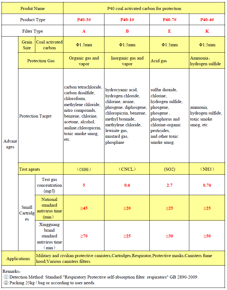 P40 coal activated carbon for protection