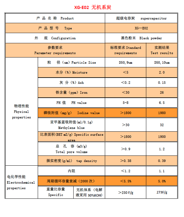XG-E02無機(jī)系超級(jí)電容器用活性炭是以合成材料為原料,經(jīng)預(yù)氧化、炭化、活化、特殊的后處理精加工而成。本產(chǎn)品具有極其發(fā)達(dá)特殊的孔隙結(jié)構(gòu)和超高的比表面積,金屬含量和灰分含量極低,能量密度和功率密度極高,充電時(shí)間短,充放電循環(huán)次數(shù)高,電化學(xué)穩(wěn)定性好,使用環(huán)境友好,使用溫度范圍廣等特點(diǎn)。廣泛應(yīng)用于各種超級(jí)電容器的制作和儲(chǔ)能領(lǐng)域。
