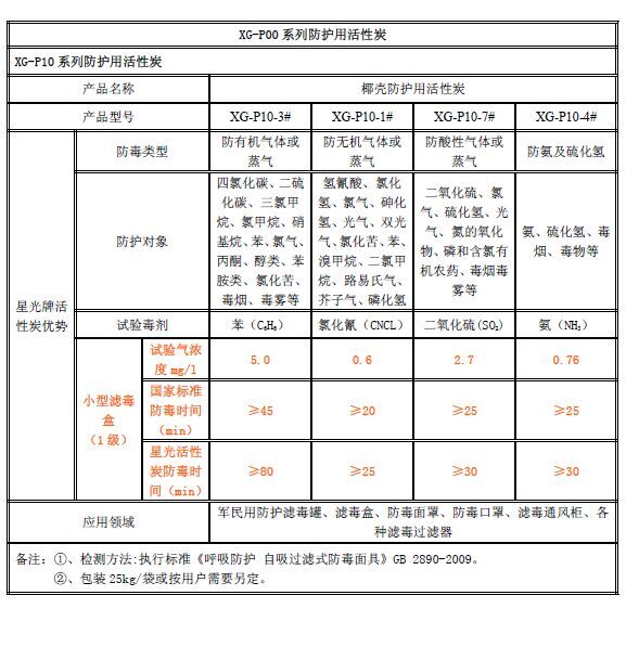 XG-P10系列防護用活性炭