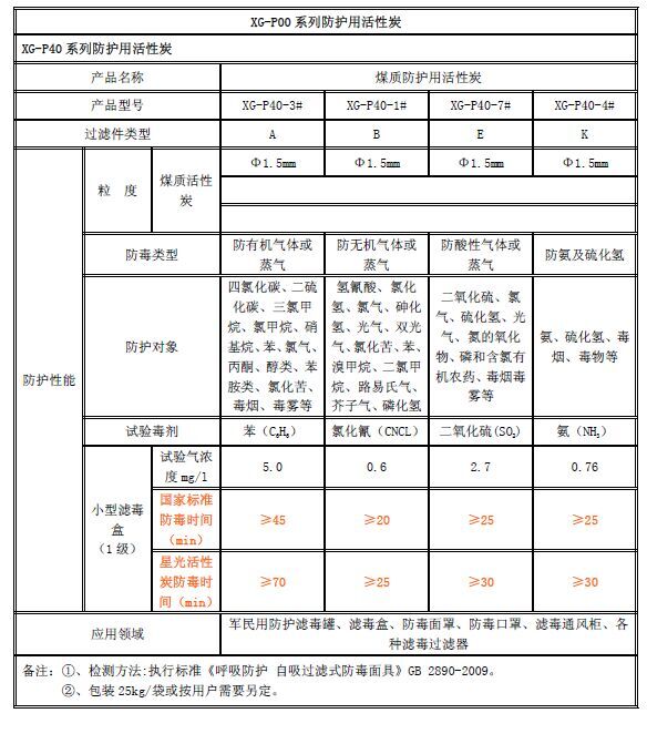 海南星光活性炭有限公司是與東北林業(yè)大學(xué)材料學(xué)院合作,主要生產(chǎn)研發(fā)國內(nèi)外防護(hù)用活性炭,材質(zhì)椰殼和煤質(zhì)兩種,生產(chǎn)工藝主要是選用最優(yōu)質(zhì)、最佳孔隙度的活性炭為基炭,經(jīng)過后處理精加工、化學(xué)催化劑浸漬、恒溫?zé)峤狻⒏稍?、除塵等工序加工而成,產(chǎn)品檢測(cè)嚴(yán)格執(zhí)行《呼吸防護(hù) 自吸過濾式防毒面具》GB 2890-2009標(biāo)準(zhǔn),過濾件小型濾毒盒(見附件)。產(chǎn)品具有比表面積大,化學(xué)催化反應(yīng)快,防毒性能好,機(jī)械強(qiáng)度高,不易產(chǎn)生炭粉。廣泛應(yīng)用于軍民用防毒面具、防毒口罩、各類型濾毒罐、濾毒盒、防毒過濾器和特種通風(fēng)柜濾板等領(lǐng)域。